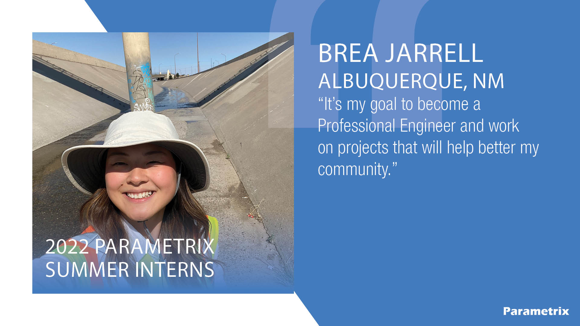 Meet Brea Jarrell, an intern with our Albuquerque Transportation division. She grew up in Albuquerque and is attending University of New Mexico with plans to graduate in the fall of 2024 as a civil engineering major.