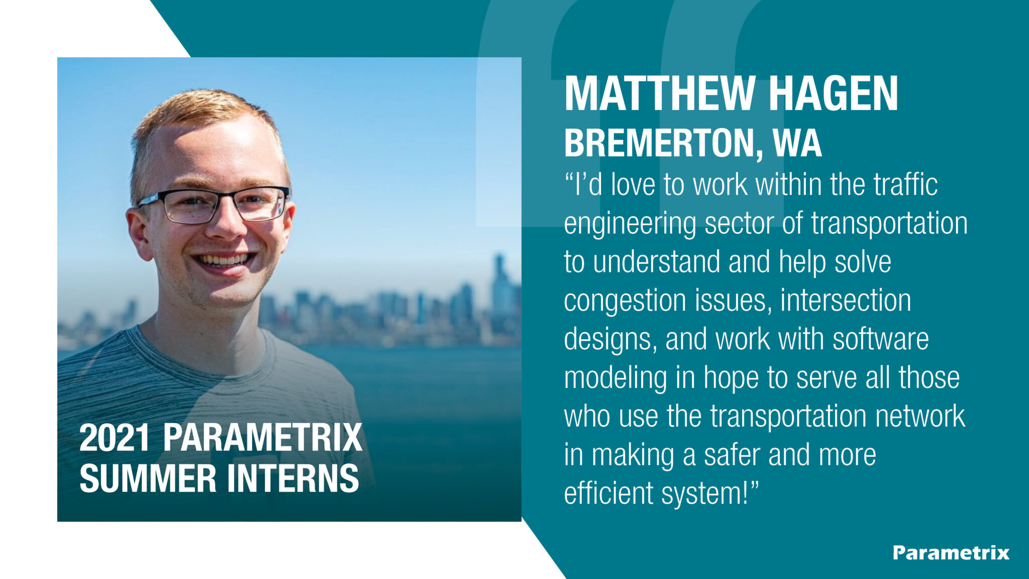 This year we are pleased to welcome nine interns to Parametrix for an immersive and educational experience. We asked each of them to share a little about themselves, their goals, and why they chose Parametrix for their internship. Read their responses below!