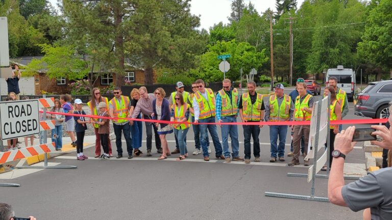 Project team cutting the ribbon alongside City of Bend Mayor KeblerOn June 9, 2023, Parametrix joined the City of Bend