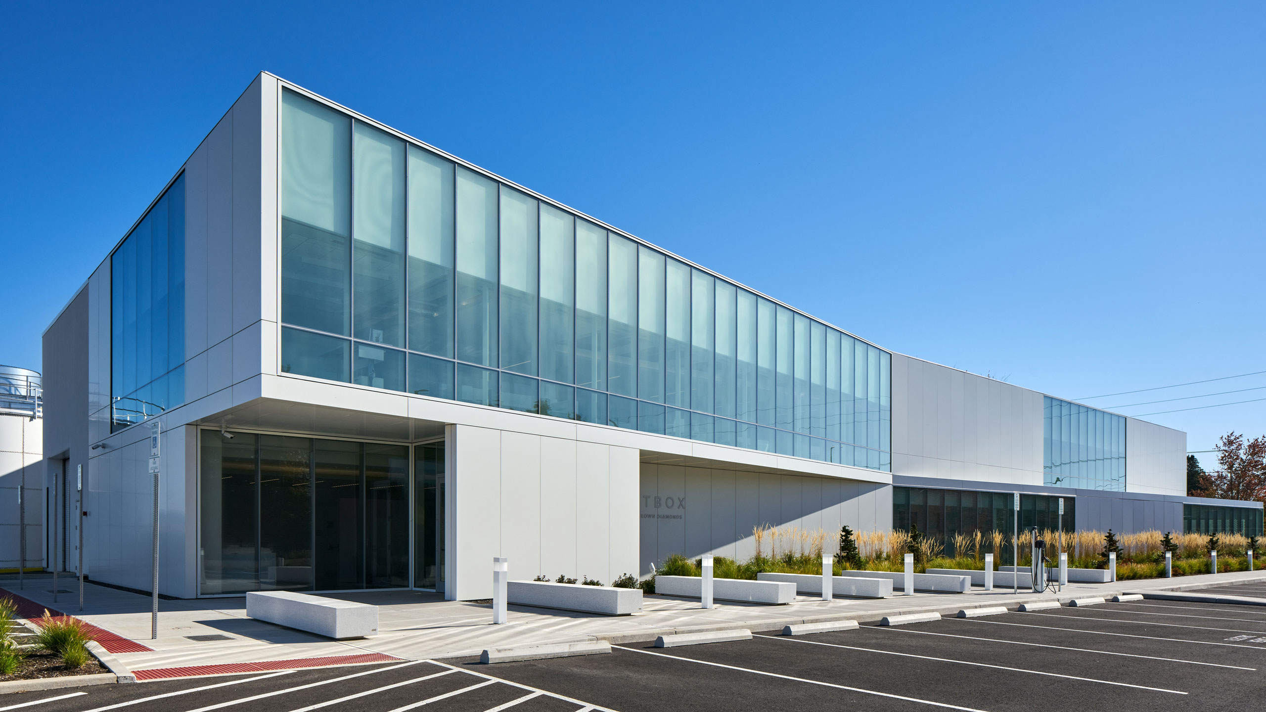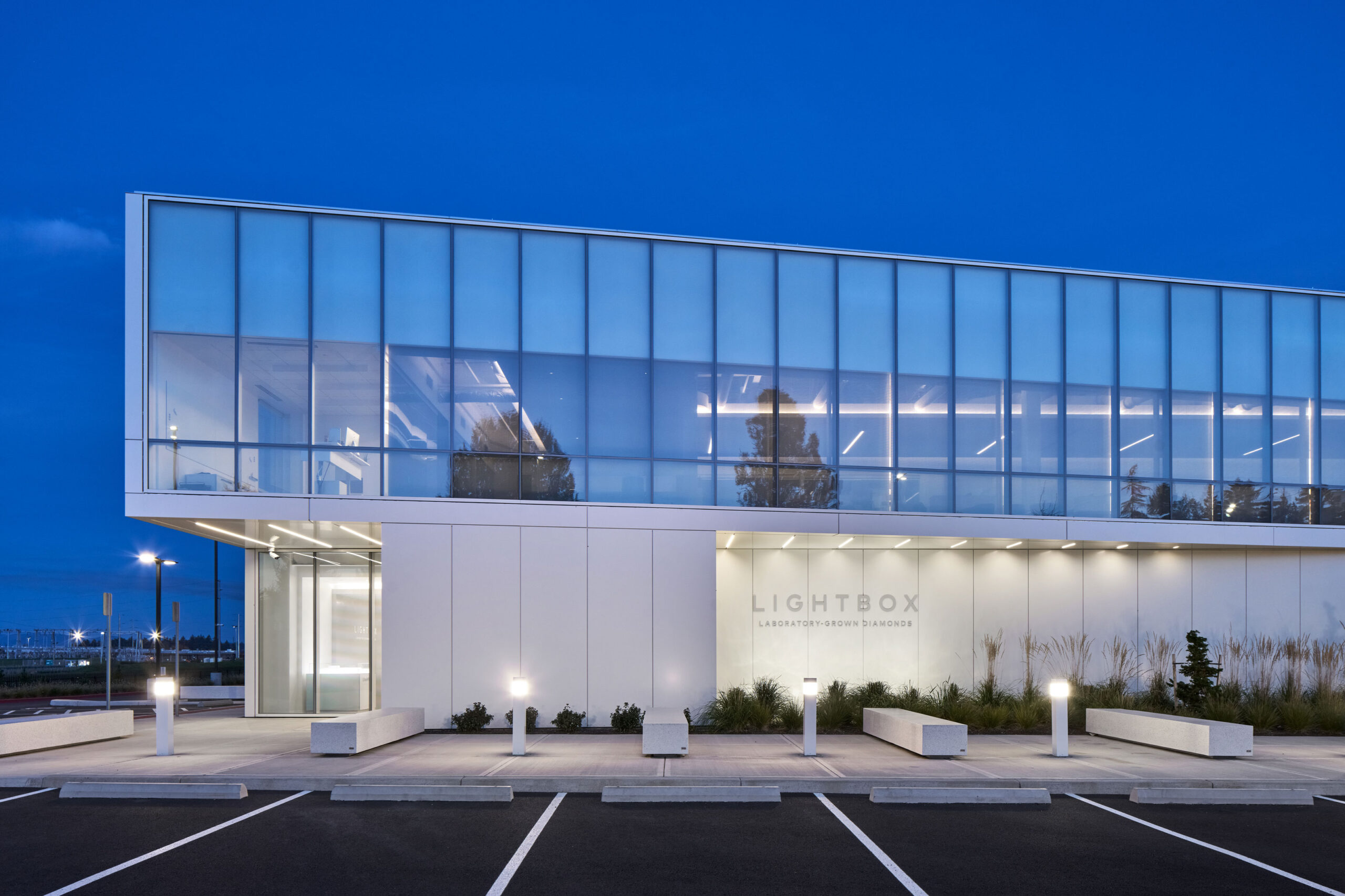Lightbox is an advanced two-story manufacturing facility producing commercial gem-quality diamonds up to one carat in size. It is a net-zero facility powered only by renewable hydroelectric energy. Lightbox is a multi-phased design and construction project to allow for future expansion.