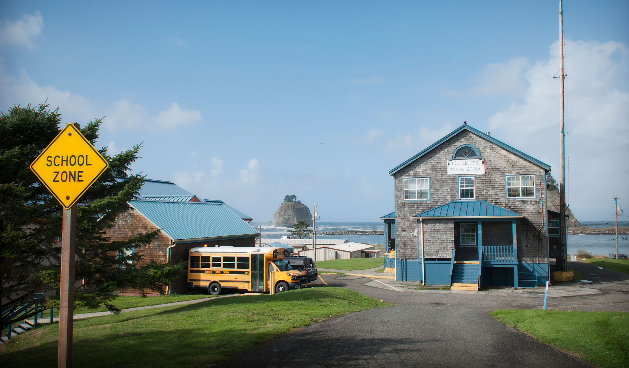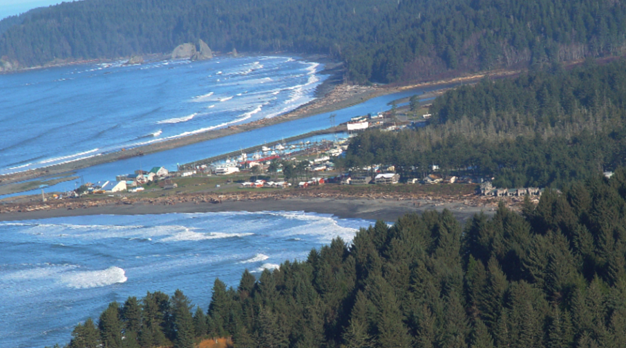 The Quileute Tribe is located in La Push on a reservation of less than 1 square mile, bounded by the Pacific Ocean, the Quileute River, and the Olympic National Park. The Tribe has long been fighting for the return of their ancestral lands on higher ground, out of the flood and tsunami zone. In 2012, 785+ acres of former Olympic National Park lands were ceded back to the Tribe. The overall project is known as the Move to Higher Ground (MTHG).