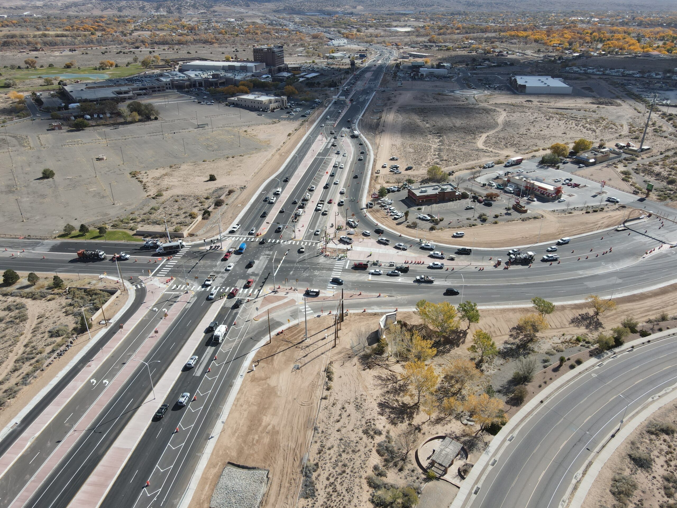In addition to the overall roadway design, Parametrix developed a continuous flow intersection design for the US 550 / NM 528 intersection. This configuration was the first of its kind in New Mexico. It is more cost-effective than grade separated designs. Because it is a new type of intersection type in the state, Parametrix also developed a driver education video and simulations to help promote driver awareness and understanding.